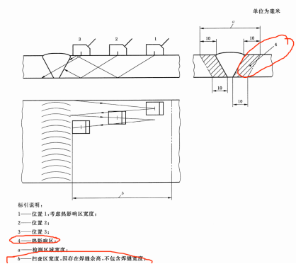 | 10 | 8?探頭移動區 探頭移動區應足夠寬,以保證聲束能覆蓋整個檢測區域(見圖2)。增加探測面,比如在焊接接頭雙面進行掃查,可縮短探頭移動區寬度。探頭移動區表面應平滑,無焊接飛濺、鐵屑、油垢及其他外部雜質。探頭移動區表面的不平整度,不應引起探頭和工件的接觸間隙超過0.5mm。如果間隙超標,應修整探頭移動區表面。當焊縫表面局部變形導致探頭與焊縫的間隙大于1mm,可在受影響位置用其他角度探頭進行補充掃查。如果該掃查能彌補未掃查到的檢測區域,此局部變形是允許的。探頭移動區和聲束反射面應允許無干擾的耦合劑和反射物。 | 9?掃查面準備 掃查面應足夠寬,以確保聲束覆蓋整個檢測區域(見圖2)。或者,如果能實現焊接接頭雙面掃查以確保聲束覆蓋整個檢測區域,可縮短掃查面寬度。掃查面表面應平滑,無焊接飛濺、鐵屑、油垢及其他外部雜質。掃查面表面的不平整度,不應引起探頭和檢測表面的間隙大于0.5mm。如果間隙超標,應修整掃查面表面。當遇到表面局部變化,如沿著焊趾掃查,導致探頭與表面的間隙大于1mm時,僅當在受影響部位增加至少一個其他角度的探頭進行補充掃查時才能被允許。該補充掃查應解決因間隙超標引起聲束未覆蓋整個檢測區域的問題。掃查面和聲束反射面應允許無于擾的耦合劑和反射物。 | 更改了掃查面準備要求(見第9章,2013年版的第8章) |